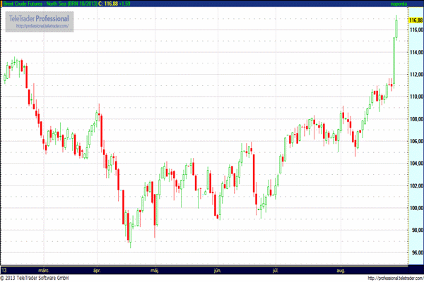 A nyersolaj piacán mutatkozó rallyt az amerikai külügyminiszter szavai robbantották ki. A vegyi fegyverek szíriai bevetése tagadhatatlan és megbocsáthatatlan - jelentette ki John Kerry amerikai külügyminiszter hétfőn Washingtonban. Az amerikai diplomácia vezetője szerint Szíriában a vegyi eszközök nagyszabású és válogatás nélküli bevetése történt, amit "erkölcsi szemérmetlenségnek" minősített, és sürgette az elkövetők felelősségre vonását.