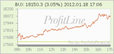 Varjú Péter, az Erste Befektetési Zrt. üzletkötője szerint a pozitív hangulat a magyar kormány békülékeny hangvételének köszönhető. Úgy vélte, a kijelentések alapján egyre közelebb kerülhet a stabilitást erősítő EU-IMF-megállapodás. A szakértő kiemelte az OTP szereplését: a bankpapír árfolyama a következő időszakban akár ezer forintot is emelkedhet. Mindkét szakértő egyetértett azzal, hogy csütörtökön maradhat a jó hangulat. A Mol 750 forinttal, 4,20 százalékkal 18.600 forintra erősödött, 4,8 milliárd forintos forgalomban.