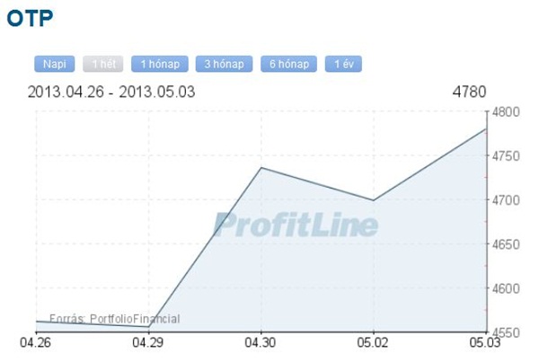 A vezető részvények közül az OTP árfolyama 4,8 százalékkal 4780 forintra emelkedett a héten. A Magyar Telekom papírjainak értéke 0,49 százalékkal 410 forintra esett. A Mol árfolyama 2,9 százalékkal 16.155 forintra emelkedett. Az Egis árfolyama 0,8 százalékkal 18 150 forintra erősödött. A másik gyógyszeripari papír, a Richter 1,25 százalékkal 33.895 forintra emelkedve zárta a hetet.