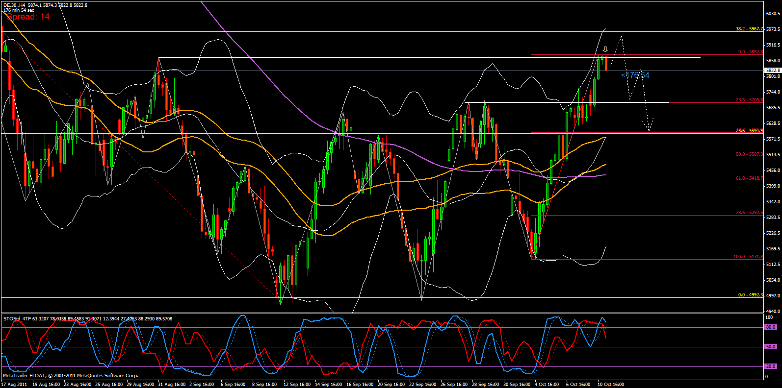 A kérdés csak az meddig, ugyanis ha az 5883-as szintek felé lesz képes emelkedni az index, akkor egészen a 6000-es szintekig erősíthetik fel a vevők a dax jegyzését. Jelenleg, egy maximum 40-50 pipet várnék felfelé, de utána egy erősebb korrekciót az 5500-as árszintig. Az 5600-as árszint még visszadobhatja majd az árakat, de ha másodsorban is ez alá lesz képes csökkenni az ár, akkor elvárásaim célba érhetnek.