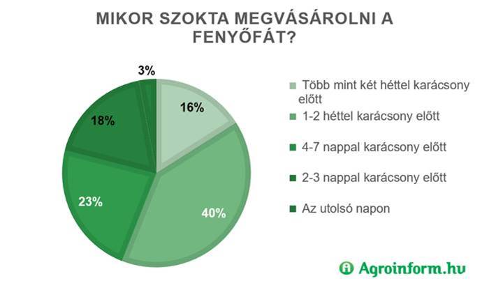 Arra, hogy lesz-e elegendő választék az idei karácsonyra, csupán az utolsó napokban fog kiderülni, mivel a vásárlók 44 százaléka a karácsony előtti utolsó héten szerzi be a díszítésre szánt fenyőt, ekkor pedig már nehéz lesz pótolni az esetleg hiányzó mennyiséget. „További bizonytalansági tényező, hogy sokan, akik minden évben belföldi vagy külföldi szállodába vagy rokonokhoz utaztak el, idén zömmel otthon maradnak, és nem tudni, hogy ők mekkora pótlólagos keresletet jelentenek majd a piacon – mutat rá Bolyki Bence, az Agroinform.hu ügyvezetője. – A biztonság kedvéért tehát célszerű lehet idén korábbra hozni a fa megvásárlását, ha mindenképpen megfelelő kínálatból szeretnénk választani.”