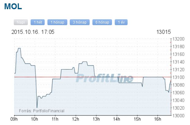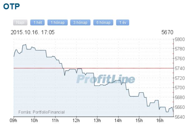 A Mol 85 forinttal, 0,65 százalékkal 13 015 forintra csökkent, 1,3 milliárd forintos forgalomban. Az OTP-részvények ára 70 forinttal, 1,22 százalékkal 5670 forintra esett, forgalmuk 3,5 milliárd forintot tett ki. A Magyar Telekom árfolyama 1 forinttal, 0,26 százalékkal 386 forintra gyengült, forgalma 444,9 millió forint volt. A Richter-papírok árfolyama 16 forinttal, 0,34 százalékkal 4700 forintra csökkentette értékét, a részvények forgalma 3,9 milliárd forintot ért el.