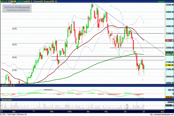 Pénteken már úgy tűnt, hogy elesik a 21.000 forintos támasz, azonban 20.500 forintról a nap végére visszahúzták a támasz fölé. Az INA miatt kialakult bizonytalanság azonban továbbra is negatívan hathat az árfolyamra.