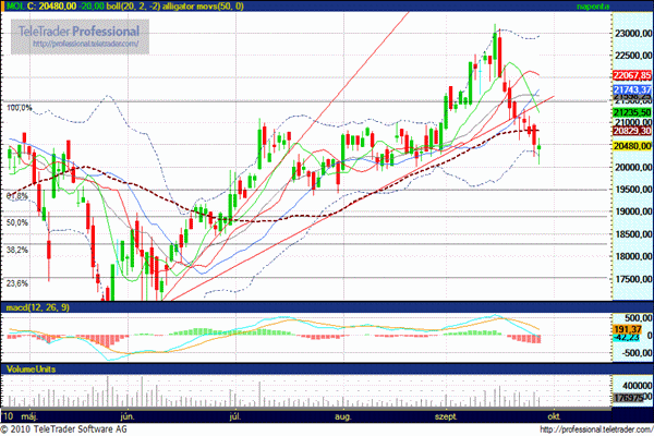 Lefelé tágítja a Bollinger-szalagot, így némi oldalazás, illetve mérsékelt felpattanás ellenére a 19.500 forintos szint elérésére lehet számítani továbbra is.
