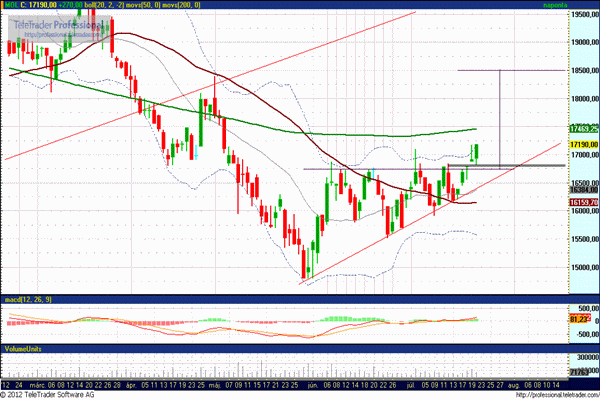 Emelkedés során ellenállás a 200 napos mozgóátlagnál, a kitörés során elvárt célár pedig 18.500 forintnál mutatkozik. Ameddig a csütörtökön megnyílt rés 16.800-16.820 forint között nyitva marad, addig az irány felfelé mutat.