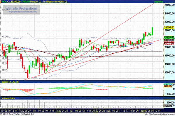 Végre sikerült elrugaszkodnia a 21.500 forintos szinttől az árfolyamnak, már régóta vártunk erre. Ennek köszönhetően megnyílt a 24.000 forint felé vezető út. Ugyanakkor a 21.250 forintnak már nem kellene elesnie.