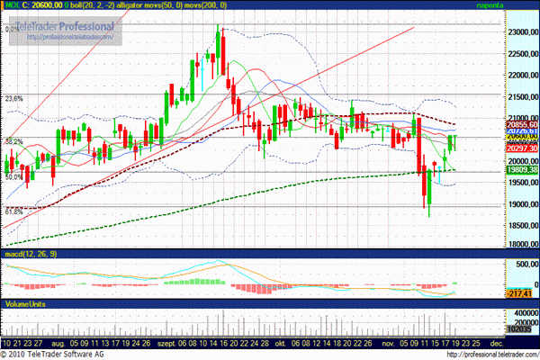 További emelkedés során ellenállás 21.000, illetve 21.500 forintnál. Amíg 20.250 felett marad, addig van esély az ellenállás áttörésére. Jelentősebb támasz 19.750 forintnál.