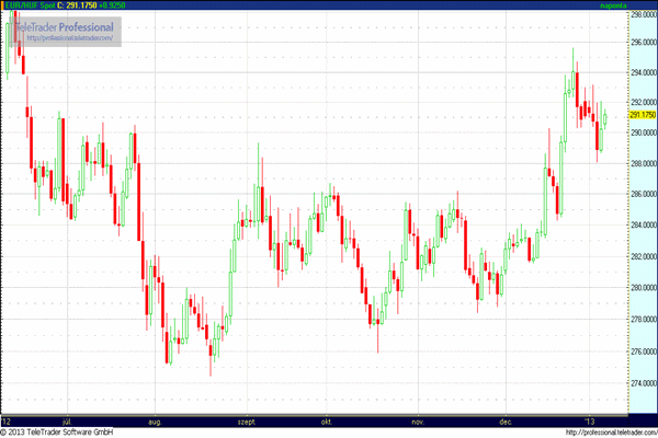 EUR/HUF (289,00 – 293,50): Úgy néz ki, hogy talán helyre áll a világ rendje, bár a pénteki napot is a „szokásos” reggeli gyengüléssel kezdte a forint, ez alkalommal dollárerősödéssel párhuzamosan. A FED jegyzőkönyv kockázati étvágyat csökkentő hatása meglátszott a régiós devizák teljesítményén. A reggeli 289 körüli árfolyam napközben már 292 fölött is járt, a zloty a 4,13-as szintig gyengült. Az EURHUF árfolyam mellett, pénteken a kötvények is eladósorba kerültek. A görbe hosszabb végén jelentősen emelkedtek a hozamok, bár a CDS még mindig a 260-as szint alatt maradt. A délutáni, vártnál kicsivel rosszabb amerikai adatok publikálása után, a 290-es szint közelében fejezte be a napot a forint. A meglepetésre 7,7%-ról 7,8%-ra módosított novemberi amerikai munkanélküliségi adat után javult a piaci hangulat. A FED a QE3-as program kivezetését a fenti adat 6,5%-ra csökkenéséhez kötötte, és úgy látszik, hogy a vártnál talán gyorsabb kilábalás mellett sem csökken még a mutató. Az öröm ma reggelig tartott: ismét gyengüléssel és 291-es szint fölött kezdjük a napot. Fontosabb hazai adatok és események: kedden a decemberi (és múlt évi) költségvetési egyenleg, a külker mérleg és az ipari termelés alakulása, csütörtökön a kötvény aukciók kereslete, hozam szintjei lehetnek árfolyammozgatók. Emellett a csütörtöki EKB kamatdöntő ülésre, és a szokásos amerikai adatokra lesz érdemes figyelni. A jellemző árfolyamsáv 290-293 lehet a hét elején.