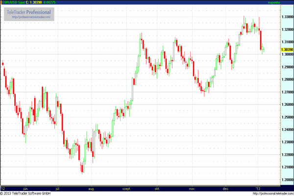 EUR/USD (1,2960 – 1,3080): A vártnál sokkal jobb ADP adat után, a pénteki NFP adat nem kápráztatta el a piaci szereplőket, emellett még a felülvizsgált novemberi munkanélküliségi ráta is növekedést mutat. Egyrészt öröm az ürömben, hogy emiatt a FED talán mégsem vezeti ki, vagy csökkenti olyan gyorsan a QE3 elemeit, mivel azt a fenti adat 6,5%-ra csökkenéséhez kötötte. Ennek elérése pedig nem látszik olyan közelinek, így maradhat a likviditásbőség, még egy darabig legalábbis. Másrészt viszont továbbra is sok a kockázati elem, ami óvatosságra késztetheti a befektetőket: a fiscal cliffet bár sikerült elkerülni és így az adósságplafon elérését is, de 1-2 hónapon belül ez a kérdés újra terítékre kerül, és ezzel együtt a politikai kötélhúzás is folytatódhat. A tőzsdék esése mellett a piacok újra elfordultak a kockázatosabb eszközöktől, és újra a dollárt favorizálják menedékdevizaként. A múlt szerdán, még az 1,33-as szinteken járó árfolyam pénteken már 1,30 alá is benézett, és a mai napot is e szint közelében kezdi. A csütörtöki napra lesz érdemes figyelni, akkor tartja kamatdöntő ülését az EKB, és publikálják a szokásos heti munkaerő piaci adatokat az USA-ban. Az EKB legutóbbi ülésén a kamatcsökkentés is felmerült alternatívaként, így ez most sem zárható ki, bár a piaci szereplők a jelenlegi kamatszintek változatlanságára számítanak. Az ülést követő sajtó tájékozatón a döntés mellett az Eurozóna problémái is terítékre kerülhetnek, a szokásos görög, spanyol kérdés mellett az olasz választások miatti bizonytalanság is felerősödhet. A dollár, bár erősödik, de az 1,30-as szint ennek gátja lehet rövidtávon, az eurónak pedig az 1,31-es szinttel gyűlhet meg a baja.