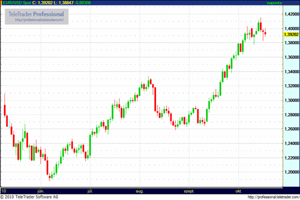 Az elmúlt napok csökkenés ellenére várható, hogy az EUR/USD árfolyam rallyja tovább folytatódik az 1,41 dolláros szint irányába, pláne, ha az amerikai Kereskedelmi Minisztérium csalódást keltő ingatlanpiaci adatokkal áll elő.