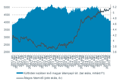 A külföldiek kezében levő magyar állampapírok állománya tovább csökkent, miközben az átlagos hátralévő futamidő emelkedett. A kockázatvállalásra okot adhat, hogy a Moody's november 6-án, a Fitch Ratings november 20-án végzi el a magyar államadós-osztályzatok értékelését. Az időpont előzetes meghatározása azonban nem kötelezi a hitelminősítőket arra, hogy a kijelölt napon tényleges osztályzat- vagy kilátás-módosítási lépéseket jelentsenek be.