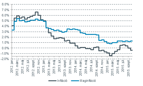 Az MNB közlemény megemlítheti, hogy az inflációs kockázatok ismét lefelé mutatnak. Szeptemberben a várt 0,1 százalék helyett átlagosan 0,4 százalékkal voltak alacsonyabbak a fogyasztói árak, mint egy évvel korábban. Ez az inflációs adat még nem ad okot aggodalomra, hisz a vártnál nagyobb esést az üzemanyagárak és szezonális élelmiszerek okozták (a maginfláció 1,3%-ra emelkedett), a nagy kérdés, hogy elindul-e a refláció novemberben, amikor kikerülnek a bázishatások.