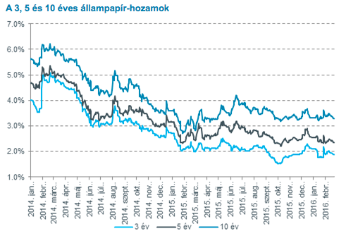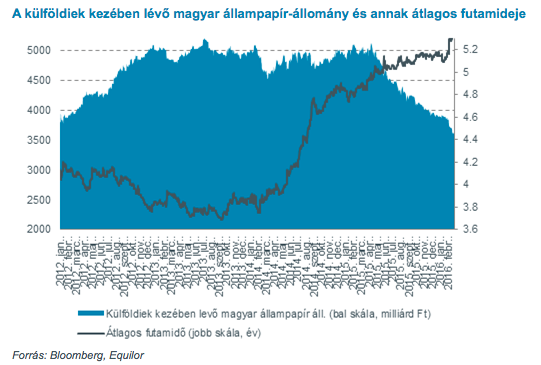 A kötvénypiac és a magyar forint is a márciusi eseményekre készül. A magyar hozamok továbbra is rekord alacsony szinten találhatóak, köszönhetően az önfinanszírozási program támasztotta kereslet-növekedésnek és az európai kötvénypiaci hozamesésnek, melyet az optimista várakozások támogatnak az EKB ülése előtt. A lejáró állampapírok (mint pl. a 16/C) hirtelen növekedést okoztak a külföldiek kezében levő magyar állampapír-állomány átlagos futamidejében, miközben maga az állomány jelentősen csökkent tavaly nyár óta.