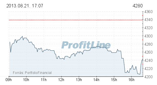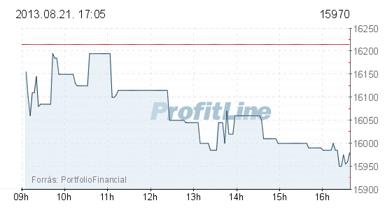 A Mol 245 forinttal, 1,51 százalékkal 15 970 forintra csökkent, 909,1 millió forintos forgalomban. Az OTP részvények ára 59 forinttal, 1,36 százalékkal 4280 forintra esett, forgalmuk 5,1 milliárd forintot tett ki. A Magyar Telekom árfolyama 8 forinttal, 2,49 százalékkal 313 forintra gyengült, forgalma 279,4 millió forint volt. A Richter papírok árfolyama 87 forinttal, 2,35 százalékkal 3620 forintra csökkentette értékét, a részvények forgalma 2,6 milliárd forintot ért el. A másik gyógyszeripari részvény, az Egis 102,9 millió forintos forgalom mellett 150 forinttal, 0,72 százalékkal 20 800 forintra csökkent.