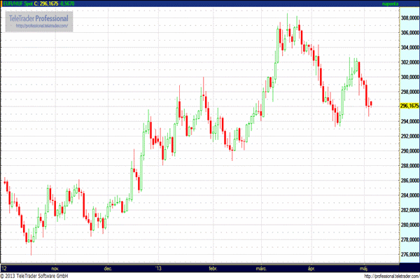 EUR/USD (1,3030 – 1,3150): Április eleje óta az 1,2950-1,3250-es sáv jellemző ebben a devizapárban, és ebből a vártnál jobb NFP adat sem tudta kimozdítani az említett sáv felső szélének közelében járó árfolyamot.