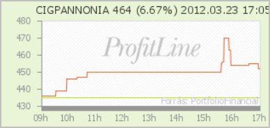 A CIG Pannónia részvényeinek kereskedését délben felfüggesztették, majd fél négykor visszaállították, miután a biztosító bejelentette új befektetési életbiztosítási termékének bevezetését. Az új termék szerzői jogát a társaság levédette, továbbá a termék nevére védjegyoltalmat igényelt. A felfüggesztés előtt a papírra 450 forinton született az utolsó kötés, a visszaállítás után pedig tovább emelkedett az árfolyama, végül 6,67 százalékos erősödéssel, 464 forinton zárt.