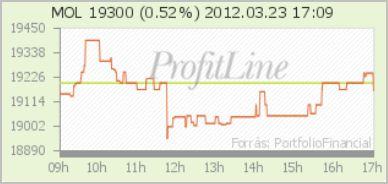 A Mol 100 forinttal, 0,52 százalékkal 19.300 forintra erősödött, 546,3 millió forintos forgalomban. Az OTP részvények ára 77 forinttal, 2,01 százalékkal 3.901 forintra nőtt, forgalmuk 5,6 milliárd forintot tett ki. A Magyar Telekom árfolyama 3 forinttal, 0,53 százalékkal 573 forintra emelkedett, forgalma 502,7 millió forint volt. A Richter papírok árfolyama 375 forinttal, 0,97 százalékkal 38.965 forintra nőtt, a részvények forgalma 186,7 millió forintot ért el. A másik gyógyszeripari részvény, az Egis viszont gyengült, 135 forinttal, 0,90 százalékkal 14.850 forintra csökkent az árfolyama, 108,2 millió forintos forgalom mellett. A kis és közepes részvények indexe, a BUMIX 1.222,61 ponton zárt pénteken, ez 14,55 pontos, 1,20 százalékos emelkedés a csütörtöki záráshoz viszonyítva.