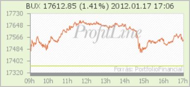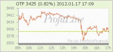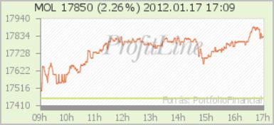 A Mol 395 forinttal, 2,26 százalékkal 17.850 forintra drágult, 2,2 milliárd forintos forgalomban. Az OTP 28 forinttal, 0,82 százalékkal 3.425 forintra erősödött, forgalma 10,6 milliárd forintot tett ki. A Magyar Telekom árfolyama 5 forinttal, 0,96 százalékkal 524 forintra emelkedett, forgalma 532,5 millió forint volt.
