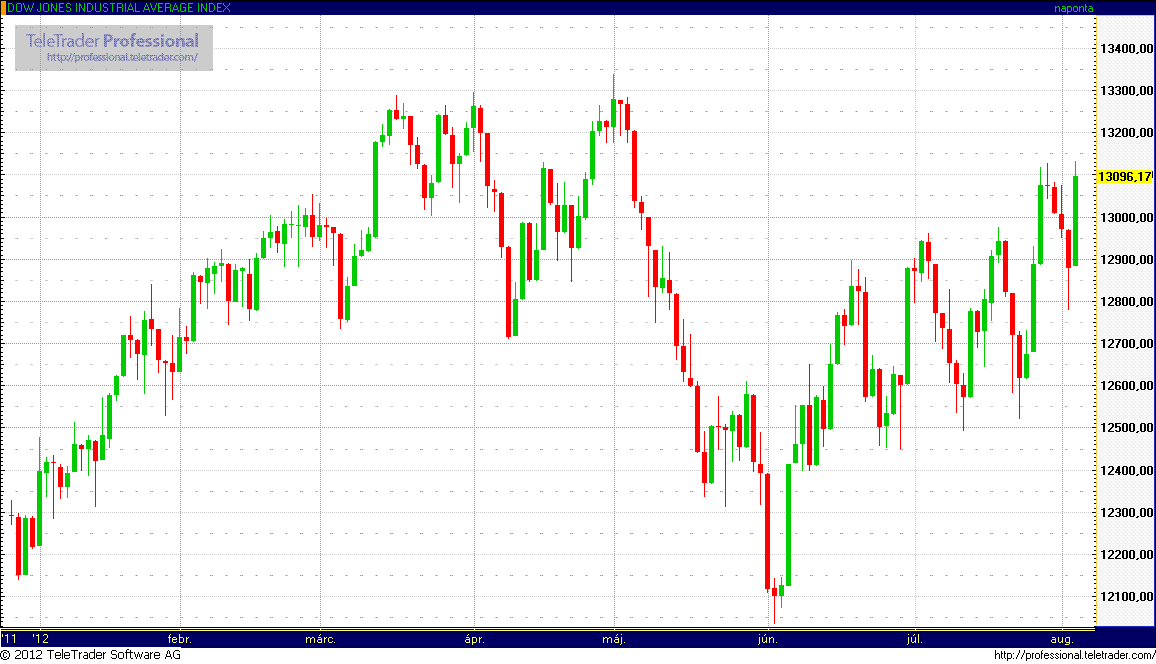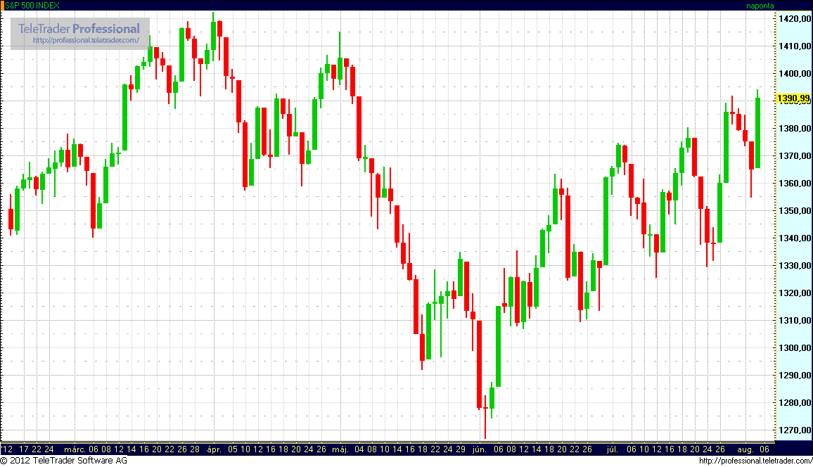 Az indexek már nyitásban meredeken emelkedtek, miután korábban az amerikai kormányzat közzétett a júliusi foglalkoztatottsági adatokat. Az amerikai gazdaságban július folyamán 163.000 munkahely létesült a júniusban mutatott 64.000 után, mindez pedig felülmúlta az előzetesen várt 95.000 fős bővülést. A munkanélküliségi ráta ugyanakkor 8,2 százalékról 8,3 százalékra emelkedett.