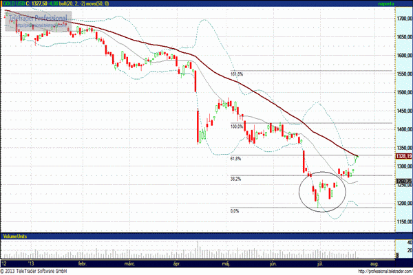 A tegnapi emelkedésben jelentős 'short covering' és technikai jellegű vételek álltak, miután az árfolyam átlépte az 1300 dollárnál húzódó ellenállási szintet. A tegnapi rally egészen az 50 napos mozgóátlagig vitte a nemesfém árfolyamát, a mozgóátlag áttörése további jelentősebb technikai emelkedést eredményezhet.