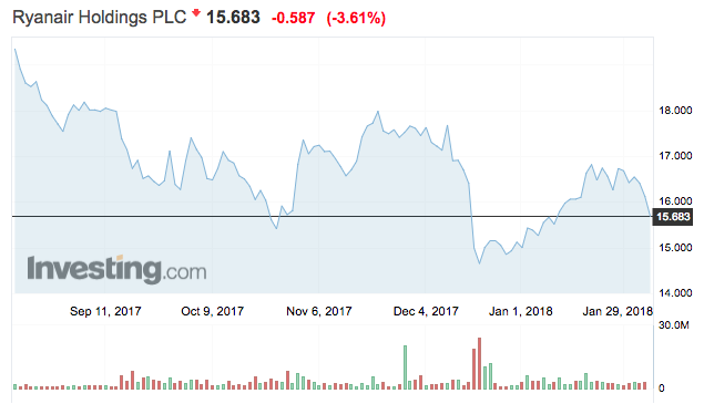 A Ryanair részvények tőzsdei árfolyam alakulása