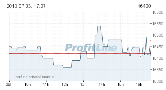 A Mol árfolyama 20 forinttal, 0,12 százalékkal 16 400 forintra csökkent, 751,6 millió forintos forgalomban.