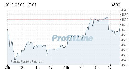Az OTP árfolyama kezdeti meredek esésből szépen lefaragott és végül 4600 forinton zárt, ami 20 forinttal, 0,43 százalékkal maradt el a keddi szinttől. A bankpapír forgalma 3,9 milliárd forint volt.