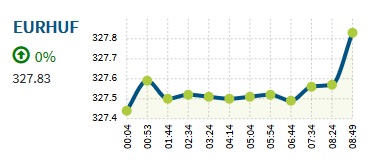 Az eurót reggel nyolc órakor 327,71 forinton jegyezték a szerda esti 327,85 forint után. Szerdán az euró jegyzése 328 forint felett is járt, ahol a forint történelmi mélypontot állított be.