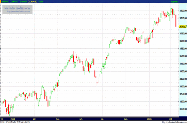 A vezető amerikai piacok közül a Dow index 159,71 ponttal, 1,07 százalékkal 14.776,53 pontra, a Nasdaq Composite index 75,54 ponttal, 2 százalékkal 3.694,83 pontra, míg az S&P 500 index 20,67 ponttal, 1,23 százalékkal 1.655,45 pontra csökkent.