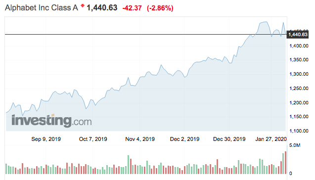 Az Alphabet részvények tőzsdei árfolyama