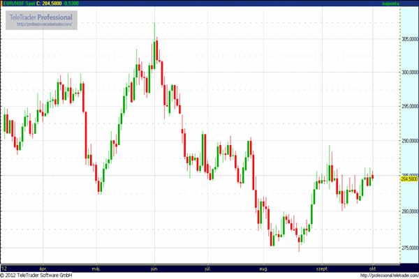 EUR/HUF (284,00 – 287,00): A csütörtöki erősödést követően a pénteki nap elég vérszegényen telt. A délutáni, vártnál rosszabb amerikai adatok megbolygatták az állóvízet. Közel 1%-ot gyengülve, 286 felett tetőzött az árfolyam. Ma reggel már 286 alatt indult a nap, de a délelőttre bejelentett rendkívüli kormány sajtótájékoztató hírére 285 alá bukott az árfolyam, majd az IMF-fel kapcsolatos ellentmondásos hírek hatására újra 285,50 fölé szaladt a kurus. Az elmúlt időszakban jól megfigyelhető, hogy a forint az EUR/USD mozgását lekövetve reagál a globális hangulat alakulására. A ma reggel publikált PMI index újra 50 fölötti értéket mutat, az augusztusi 49,6-os érték után 52,5 lett a szeptemberi adat, ami a gazdasági szereplők javuló hangulatára utal. A héten még a külkereskedelmi mérleg és az ipari termelés alakulása lesz hazai oldalon fontos adat, de leginkább az IMF-fel kapcsolatos fejlemények lesznek a meghatározók.