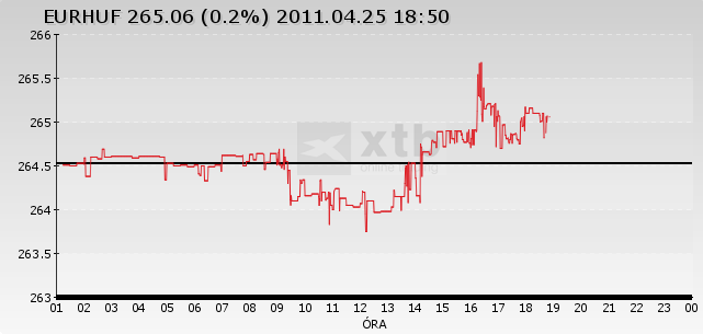 Hétfő este a forint 265,02/euró volt vételi oldalon a londoni bankközi piac automatikus jegyzésében, kissé gyengébb a vasárnap esti 264,42/eurónál és a pénteki késői 264,70/eurónál. A svájci frankkal szemben 206,40/franknál tartott, 0,82 százalékkal gyengébben a péntek estinél.