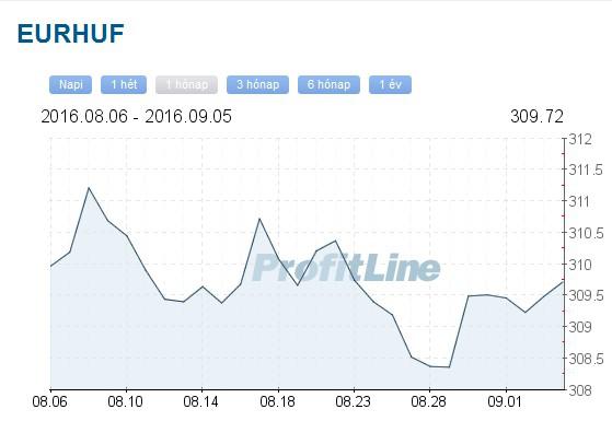 Az eurót péntek este fél hétkor 310,31 forinton, hétfőn reggel nyolc órakor 309,81 forinton jegyezték a bankközi piacon. A dollár jegyzése 278,17 forintról 277,03-ra, a svájci franké 283,63 forintról 283,11 forintra csökkent.
