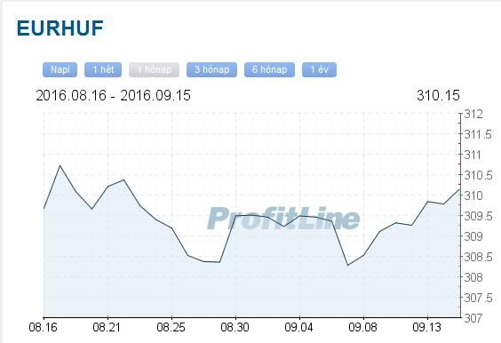 Az eurót a szerda esti 310,24 forint után csütörtök reggel nyolc órakor 310,16 forinton jegyezték. A dollárt 275,35 forint után 275,63 forinton, a svájci frankot pedig 283,38 forint után 383,19 forinton.