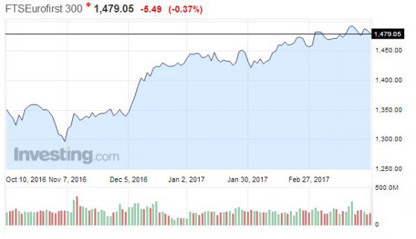 Hétfőn az európai tőzsdeindexek veszteséggel zártak, a pán-európai indexek közül a Stoxx Europe 600 és az FTSE Eurofirst 300 indexek 0,4 százalékkal csökkentek, az euróövezeti EuroStoxx50 index pedig 0,2 százalékkal. A frankfurti DAX index 68 ponttal, 0,57 százalékkal zárt alacsonyabban, a londoni FTSE-100 index 43 ponttal, 0,59 százalékkal csökkent, a párizsi CAC-40 index pedig 3 ponttal, 0,07 százalékkal. Madridban 0,06 százalékkal zárt alacsonyabban az IBEX-35 index, Milánóban az FTSE MIB pedig 0,32 százalékkal.