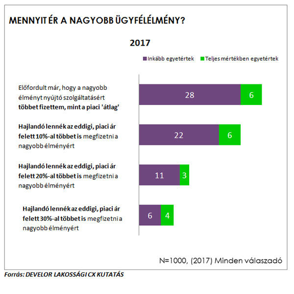 A jól eltalált ügyfélélmény stratégia tétje továbbra is óriási, habár nem feltétlenül pontosan ugyanaz, mint a korábbi években. Míg 4-5 évvel ezelőtt a pozitív ügyfélélmény markánsan kimutatható értéknövelő potenciállal rendelkezett, addig mára ez fokozatosan veszített jelentőségéből, legalábbis abban a tekintetben, hogy egyre kevesebben hajlandóak többet fizetni a kiemelt bánásmódért. A jelenség oka elsősorban a szolgáltatási színvonal általános emelkedésével magyarázható, azaz amit korábban extra szolgáltatásként tartottak számon a fogyasztók, az mára az alapelvárásaik között szerepel. Az ügyfélélmény ügyfélmegtartó és piacszerző ereje ettől függetlenül azonban mit sem változott, sőt utóbbi tekintetében komoly lehetőségeket rejt egyes szektorok számára a közeljövő. A lakossági kutatás eredményei alapján ugyanis kezd feloldódni a fogyasztókat az elmúlt években jellemző defenzív mentalitás, minek következtében a fogyasztásuk szinten tartására, esetleg csökkentésére fókuszáltak. Az idei évben már határozottabban túlsúlyba kerültek azok, akik többet akarnak szolgáltatóiktól, ennek hatásai elsősorban a mobil- és online kommunikáció, az élelmiszerkereskedelem és a banki, pénzügyi szolgáltatások területein lesznek érezhetők, illetve tapasztalhatók már most is.
