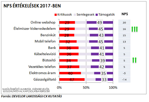 Szintén örömteli fejlemény, hogy összességében az lakosság is egyre elégedettebb az egyes szektorok teljesítményével. Az élen ismét az online kereskedelem, a webshopok végeztek, de a képzeletbeli dobogó második illetve harmadik helyét megszerző két terület, az élelmiszer kiskereskedelem, illetve a töltőállomások szolgáltatásaival is alapvetően elégedettek a fogyasztók. Az alapvetően pozitív összképen egyedül a közműszolgáltatások, pontosítva az elektromos áram- illetve a gázszolgáltatók rontanak, az ügyféltámogatottságot mérő Net Promoter Score (NPS) tekintetében mindkét szektor a negatív tartományba került, azaz itt bőven lenne még tere a fejlődésnek.