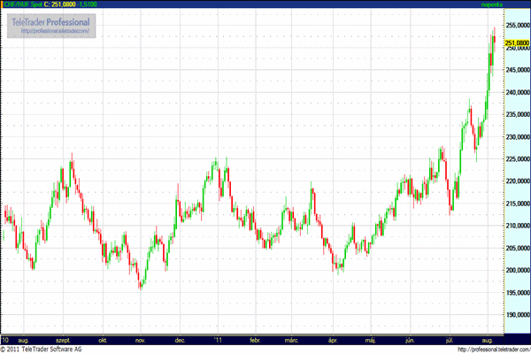 A frank az utóbbi napokban az euróval, a dollárral és egy sor egyéb devizával - így a forinttal szemben is - egyre magasabb csúcsokra erősödött. A forinttal szemben legutóbb pénteken kora hajnalban ért el történelmi rekordot; nem sokkal hajnali egy óra után 254,80 forinton jegyezték a frankot. (MTI)