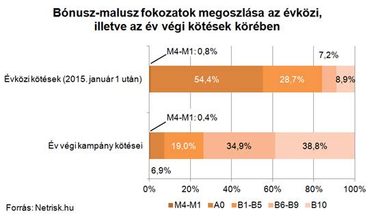 Az évközi kötések között a legnagyobb halmaz az A0 besorolásoké, az összes érintett személyautó 54 százaléka ebbe a körbe tartozik. Ugyanakkor az év végi váltók között a B10, vagyis a legkedvezményezettebb fokozatban szerepel 10-ből csaknem 4 autó. Az ő díjuk mindössze 40-50 százaléka az A0-ban szereplő autók tarifáinak.