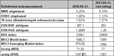 „Az intézményi befektetők a tipikusan menekülő befektetésnek tartott arany igen magas árszintjének további erősödését feltételezik. Ami ennél is fontosabb, hogy a válaszadók többsége az arany árának emelkedésével számol, ami az elmúlt hetekben, hónapokban tapasztalt bizonytalanság szinten maradását valószínűsíti” – magyarázta a befektetési szakember. A pénzügyi befektetők a kőolaj hordónkénti világpiaci árára vonatkozóan is emelkedést vetítenek előre, átlagosan 77 dollár hordónkénti árat feltételezve. A BUX értékét illetően optimistábbak a válaszadók, hiszen a tőzsdeindex értékének 1%-os erősödését feltételezik jövő év augusztus végére.