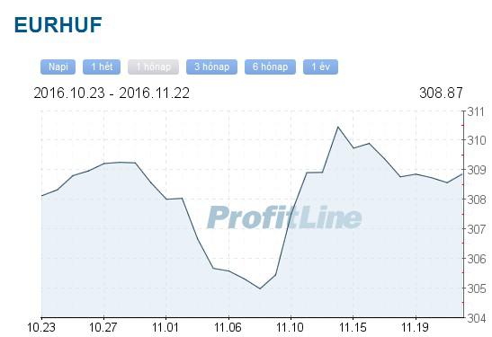 Az eurót reggel nyolc órakor 308,57 forinton, a dollárt 290,56 forinton, a svájci frankot pedig 287,58 forinton jegyezték. Az előző este a jegyzések sorrendben 309,16 forinton, 291,71 forinton és 290,03 forinton álltak.