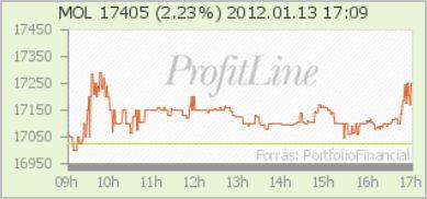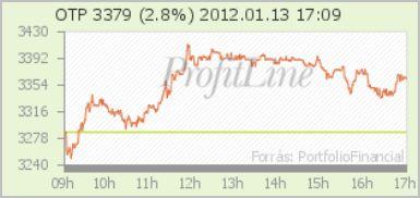 A Mol 380 forinttal, 2,23 százalékkal 17.405 forintra erősödött, 2,2 milliárd forintos forgalomban. Az OTP részvények ára 92 forinttal, 2,80 százalékkal 3.379 forintra nőtt, forgalmuk 16,9 milliárd forintot tett ki. A Magyar Telekom árfolyama 7 forinttal, 1,36 százalékkal 523 forintra emelkedett, forgalma 917,8 millió forint volt.