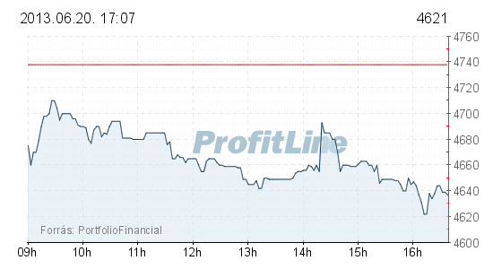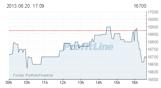 A vezető magyar részvények közül a Mol ára 175 forinttal, 1,04 százalékkal 16 700 forintra csökkent, 1,3 milliárd forintos forgalomban. Az OTP-részvények ára 117 forinttal, 2,47 százalékkal 4621 forintra esett, forgalmuk 9,7 milliárd forintot tett ki.