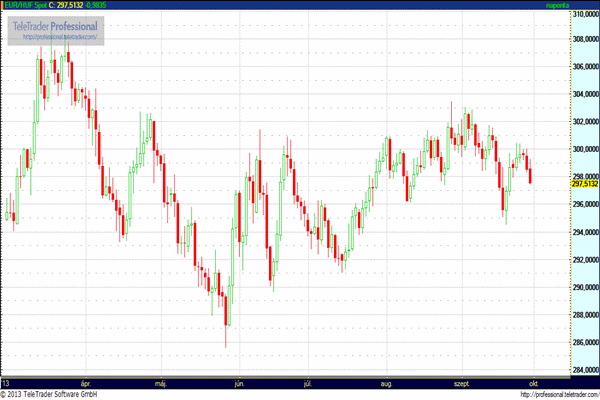 Forint szempontjából a 2014-es költségvetés ma ismertetett tervezete lehet meghatározó, melyből megtudhatjuk, hogy a nagyobb, de még mindig 3% alatti hiányterv és a tartalékok csökkenő szintje mellett mire számíthatunk jövőre. A nemzetközi adatoknak is lehet majd hatással a hangulaton keresztül az árfolyamra, de az elmúlt időszakra jellemző 296-303-as sáv lehet továbbra is jellemző.