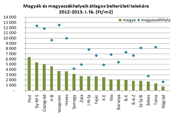 Külön vizsgálva a megyeszékhelyek telekárait Veszprém bizonyul a legdrágábbnak, 12,5 ezer Ft/m2-es átlaggal. Ezután hajszállal lemaradva Győr következik, majd Szeged, 11,8 ezer forintos fajlagos átlagértékkel. A lista végén pedig Békéscsaba és – bőven kétezer forint alatti átlagos négyzetméterárral – Salgótarján állnak. „Az országosan rendkívül alacsony szinten lévő telekárak egyben jó lehetőséget is jelentenek a vevőknek, hiszen jelenleg nagyon kedvező feltételekkel lehet telket vásárolni” – mondja Valkó Dávid, az OTP Jelzálogbank ingatlanpiaci vezető elemzője.