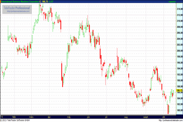 Az IBM árfolyama jelentős forgalom mellett 6 százalékkal 175,45 dollárra zuhant a harmadik negyedéves gyorsjelentését követően. A gyorsjelentés előtt a tegnapi rendes kereskedés folyamán az IBM árfolyama 1,12 százalékkal 186,73 dollárra emelkedett.