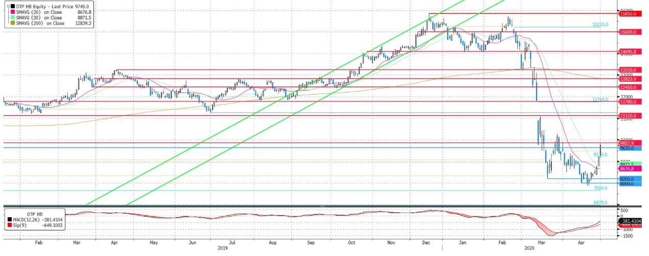 Az elmúlt napokban nagyot ugrott az OTP árfolyama, azonban még így is jelentős tér van az árfolyam további emelkedése előtt és a hirtelen emelkedés ellenére sem számít túlvettnek a részvény. Hosszabb távon a 200 napos mozgóátlag visszatesztelése reálisnak tekinthető. Ez jelenleg 12.839 forintnál van, azonban a márciusi-áprilisi részvénypiaci zuhanás hatására lefelé fog jönni a mozgóátlag is, így a kiszállási pontot a mozgóátlag alatti erősebb szinthez, 12.450 forinthoz javasoljuk elhelyezni.