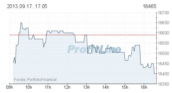 A Mol 125 forinttal, 0,75 százalékkal 16 465 forintra csökkent, 685,3 millió forintos forgalomban. Az OTP részvények ára 36 forinttal, 0,82 százalékkal 4425 forintra erősödött, forgalmuk 4,5 milliárd forintot tett ki. A Magyar Telekom árfolyama nem változott 322 forintot ért, forgalma 583,4 millió forint volt. A Richter papírok árfolyama 2 forinttal, 0,05 százalékkal 3700 forintra esett, a részvények forgalma 1,4 milliárd forintot ért el. A másik gyógyszeripari részvény, az Egis 451,9 millió forintos forgalom mellett 65 forinttal, 0,30 százalékkal 21 785 forintra nőtt.