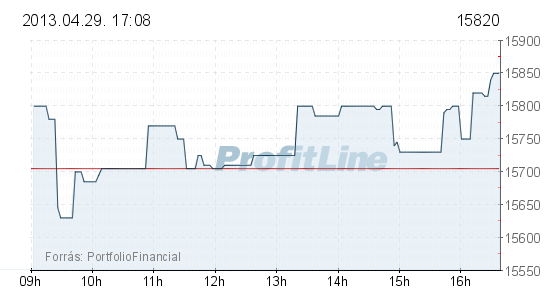 A Mol 115 forinttal, 0,73 százalékkal 15 820 forintra erősödött, 877,1 millió forintos forgalomban. Az OTP-részvények ára 6 forinttal, 0,13 százalékkal 4556 forintra csökkent, forgalmuk 1,4 milliárd forintot tett ki.