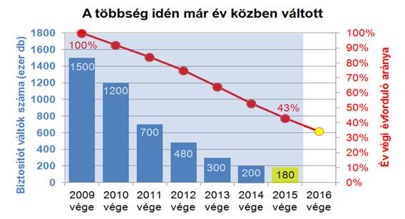 A piaci szereplők figyelme ma már sokkal inkább az év közben váltókra koncentrálódik: az érintett 15 biztosító (azóta az Astra már kiesett ebből a körből) az elmúlt évközi időszak során 77-szer módosította kisebb-nagyobb mértékben tarifáit annak érdekében, hogy minél pontosabban elérhesse a megcélzott ügyfélkört. A tapasztalatok szerint a biztosítók egyre jobban képesek figyelni a megfelelő kár/díj egyensúly beállítására is.